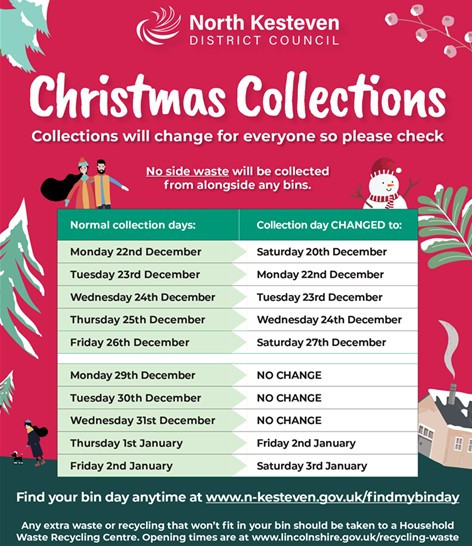 The changes are made to accommodate bank holidays, ensuring everyone still has a weekly collection and that our hard-working crew get to enjoy the festive season too.