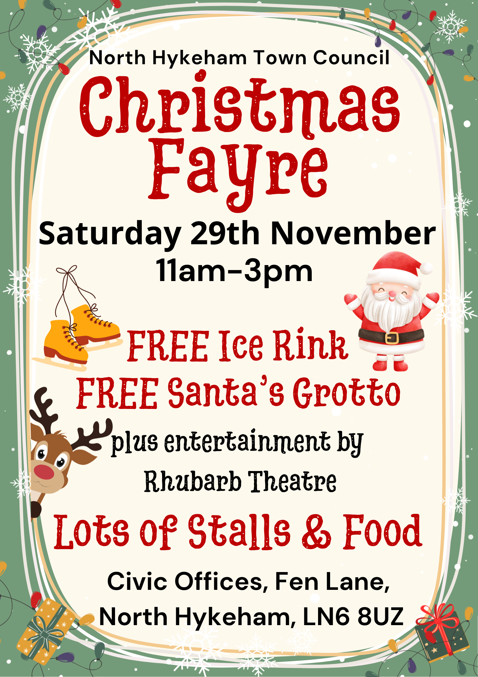 It is just a few weeks until the North Hykeham Town Council's Christmas Fayre, taking place on Saturday 29th November, 11am-3pm, at the Civic Offices, Fen Lane, North Hykeham LN6 8UZ, with a free ice rink, free Santa's Grotto and entertainment by Rhubarb Theatre. There will be a good selection of food stalls, coffee, hot chocolate, mulled wine and an array of craft stalls including locally designed board games, locally written books, Christmas decorations and wreaths, sweets and balloons, wax melts and soaps, hair scrunchies and jewellery, book cushions and gifts, sweets and tombola - and lots more!!